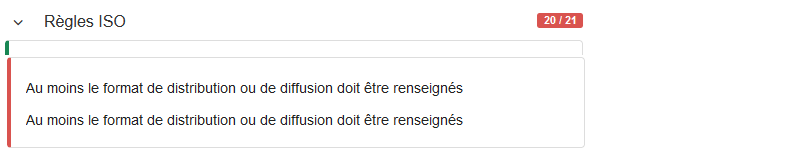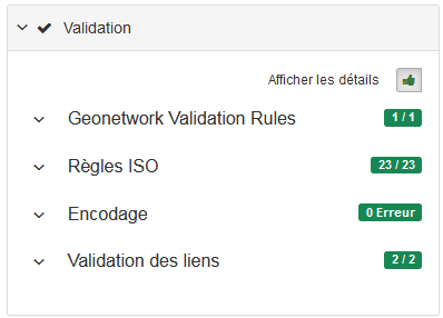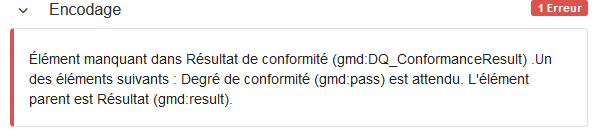 Il s'agit de mettre en évidence des erreurs au sens de la Directive INSPIRE. Pour vérifier la validité au sens INSPIRE, cliquer sur le bouton Valider dans le bandeau du haut.